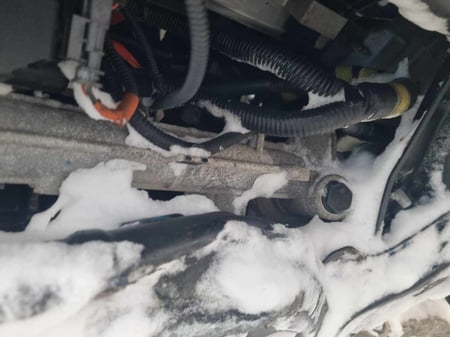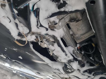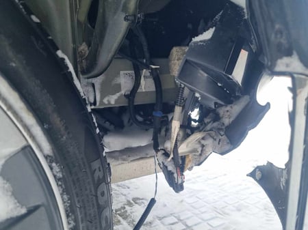 "Apgadinta: AV baterija, priekinė pakaba, d. p. šonas, priekis."